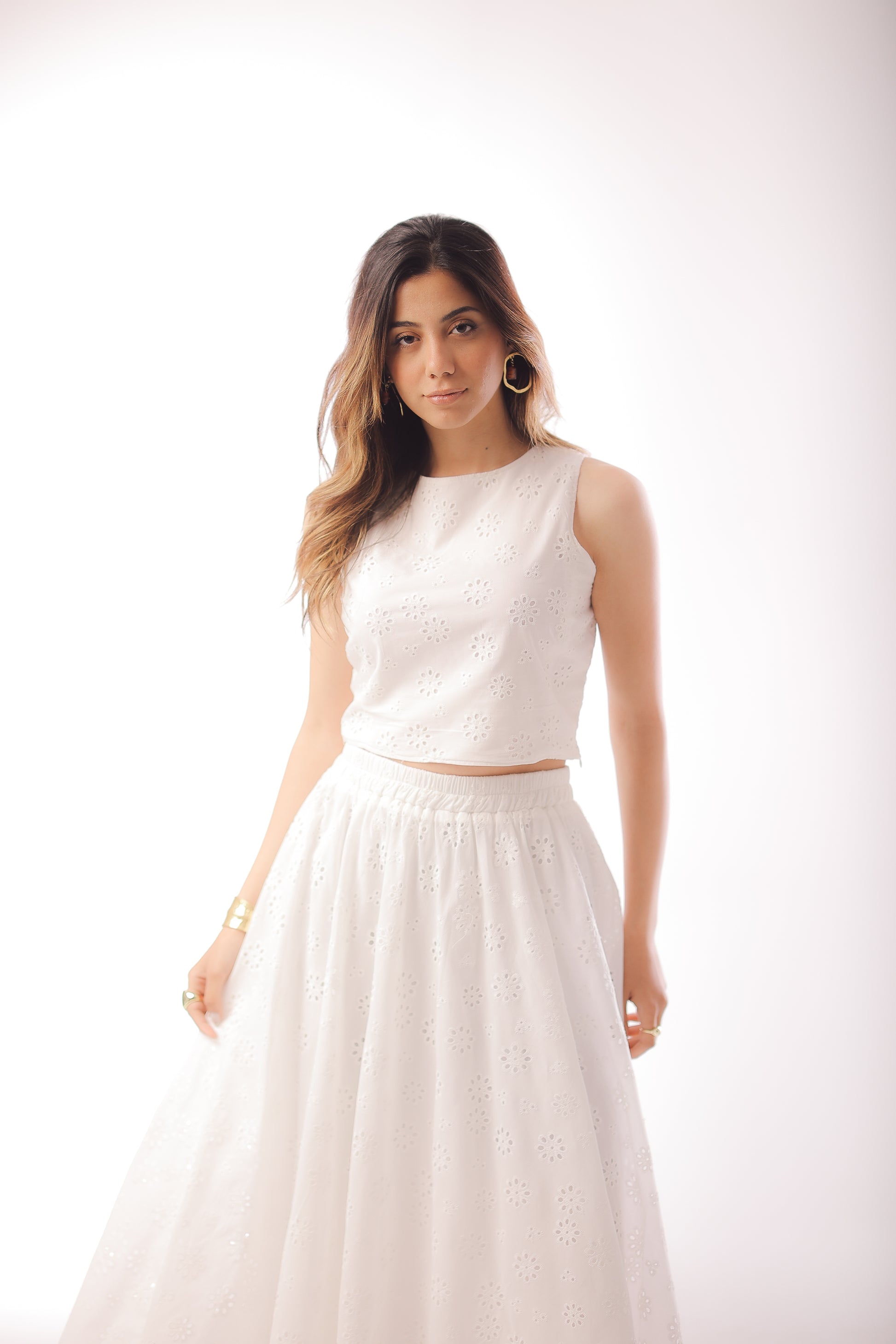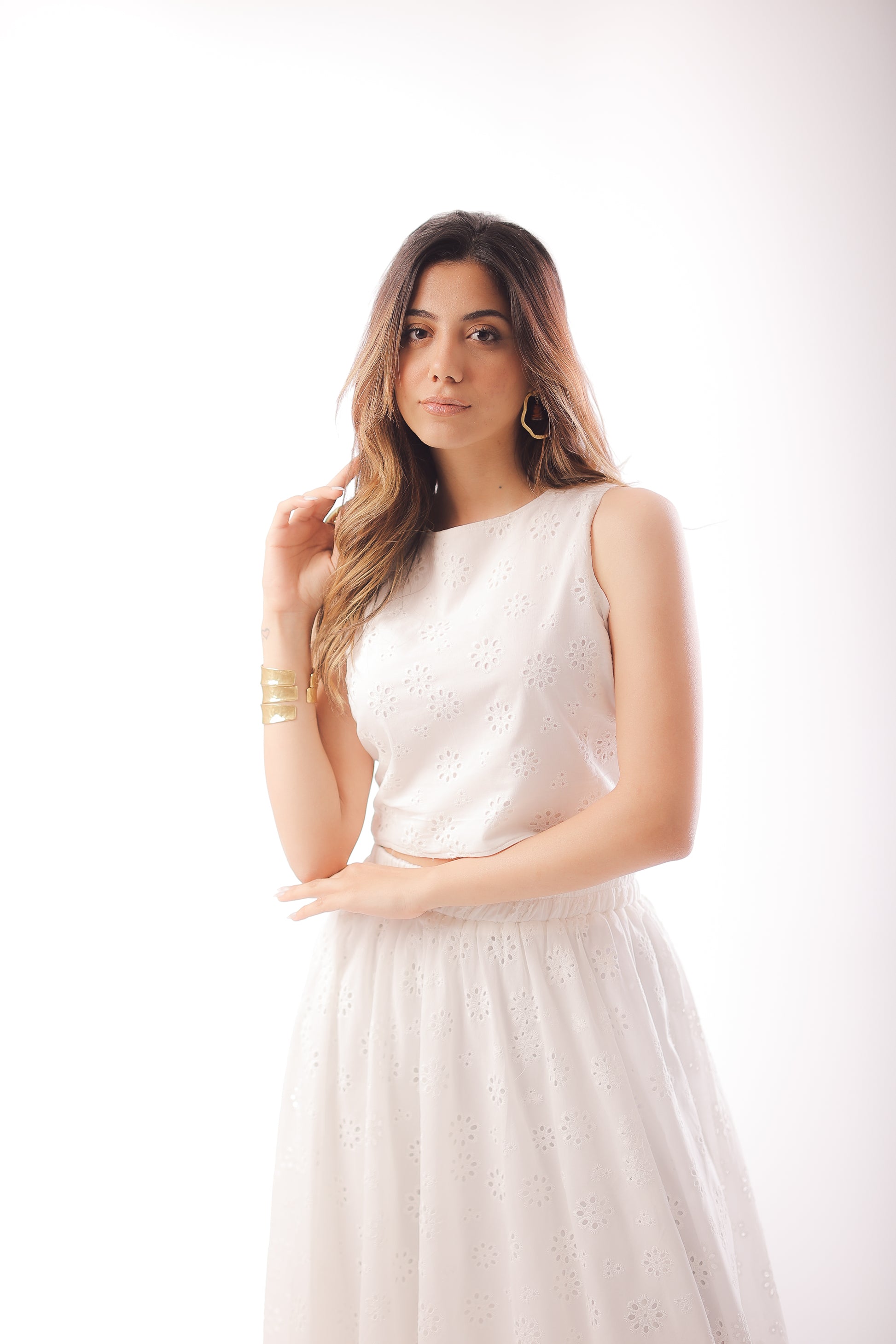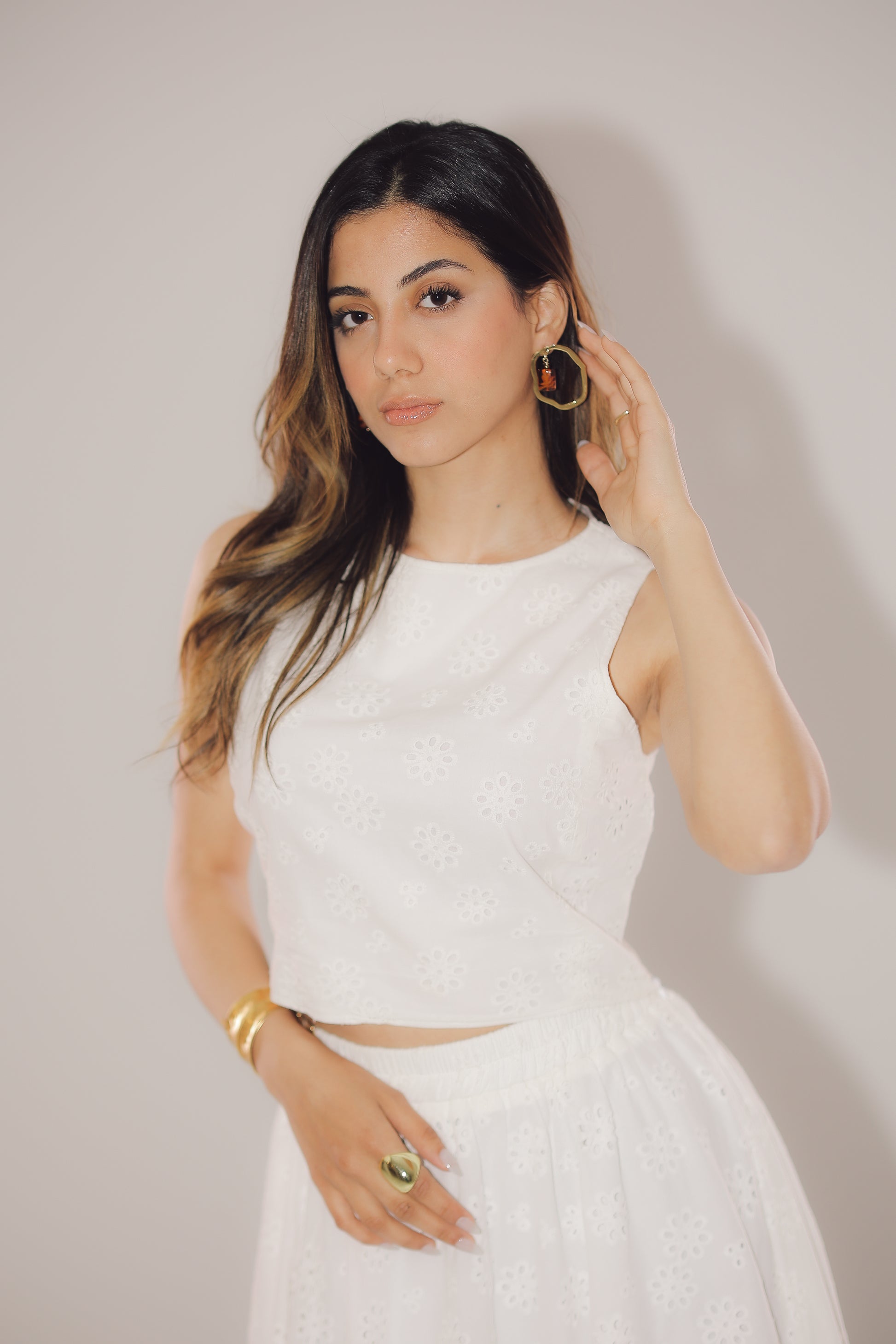 Two-piece linen set made from linen, featuring delicate floral embroidery. Lightweight, breathable, and perfect for summer days.